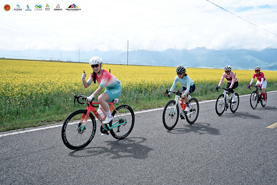 本次比赛有来自北京、天津、福建等20多个地区的900多名骑行爱好者参加,100多支车队用3小时,在31.5公里的美景观赛道驰骋。赛道全程横穿百里油菜花海核心区,其中25公里与环大美青海国际公路自行车赛赛段重合,为选手们带来职业级的竞速体验。骑手们穿行时,一边是金波翻涌的万亩油菜花田如地毯铺展至天际,另一边是祁连山岗什卡雪峰的终年积雪熠熠生辉,“车在花中行,人在画中游”的意境在此刻具象为震撼人心的实景。