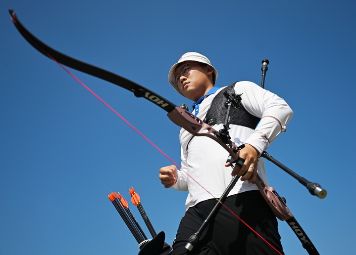 11月15日,第十五届全国运动会男子反曲弓个人1/16淘汰赛在深圳举行。