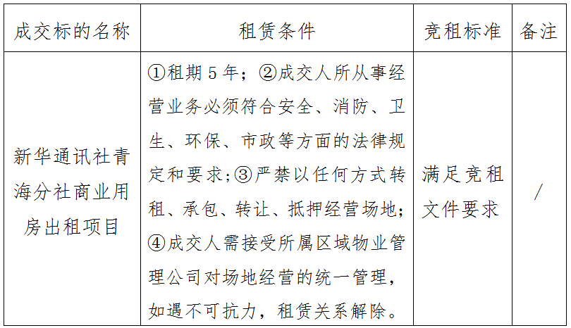 新华通讯社青海分社商业用房出租项目成交结果公告