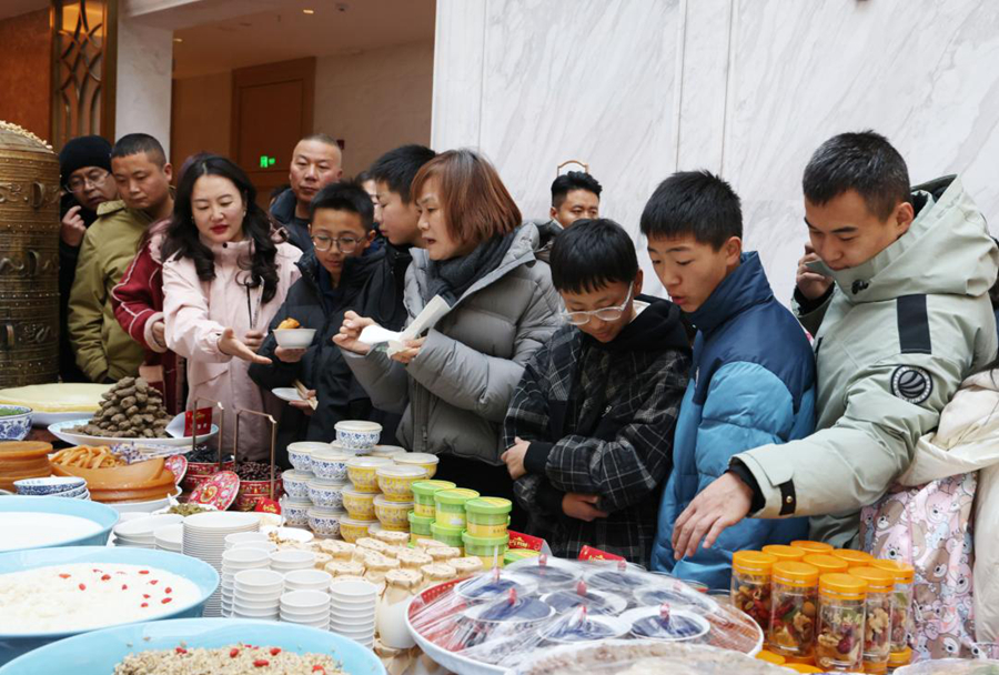 “食与链”供应链对接活动精准聚焦牦牛、藏羊、黄菇、青稞等刚察特色农畜产品,刚察青湖农牧投资开发有限公司等海北州四县供应链企业轮番登台推介;万达、索菲特等餐饮龙头企业直面供应链痛点建言献策;青海乔穆杰玛实业有限公司系统介绍产品认证、屠宰分割、市场输出等关键环节,现场供需双方开展精准对接,着力构建长期稳定产销协作机制。活动期间,青海家宴名企名厨为刚察本地餐饮企业传授牛肉面、熬饭、砂锅、香煎牛羊排等经典菜品技法,本地餐饮企业同步展示了藏餐礼宴的传统技艺,实现了技艺传承与人才培养的双向交流和共同提高。作为多元化消费场景的创新实践,青海家宴有机衔接刚察县“冰雪主题”系列文旅活动,结合省内外旅游代表体验圣泉湾冰雕雪景、参与跨年篝火、观赏高原日出及文旅推介表彰等活动,有效激活“美食+冰雪+文旅”多业态融合消费场景。
